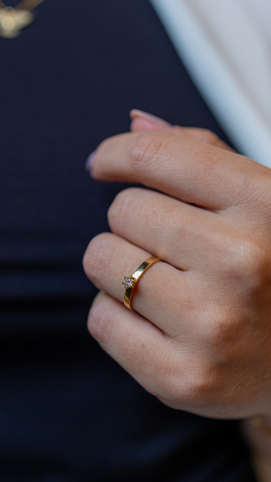 Nossos anéis de noivado unem diamantes selecionados com design refinado, representando o início de uma promessa eterna.