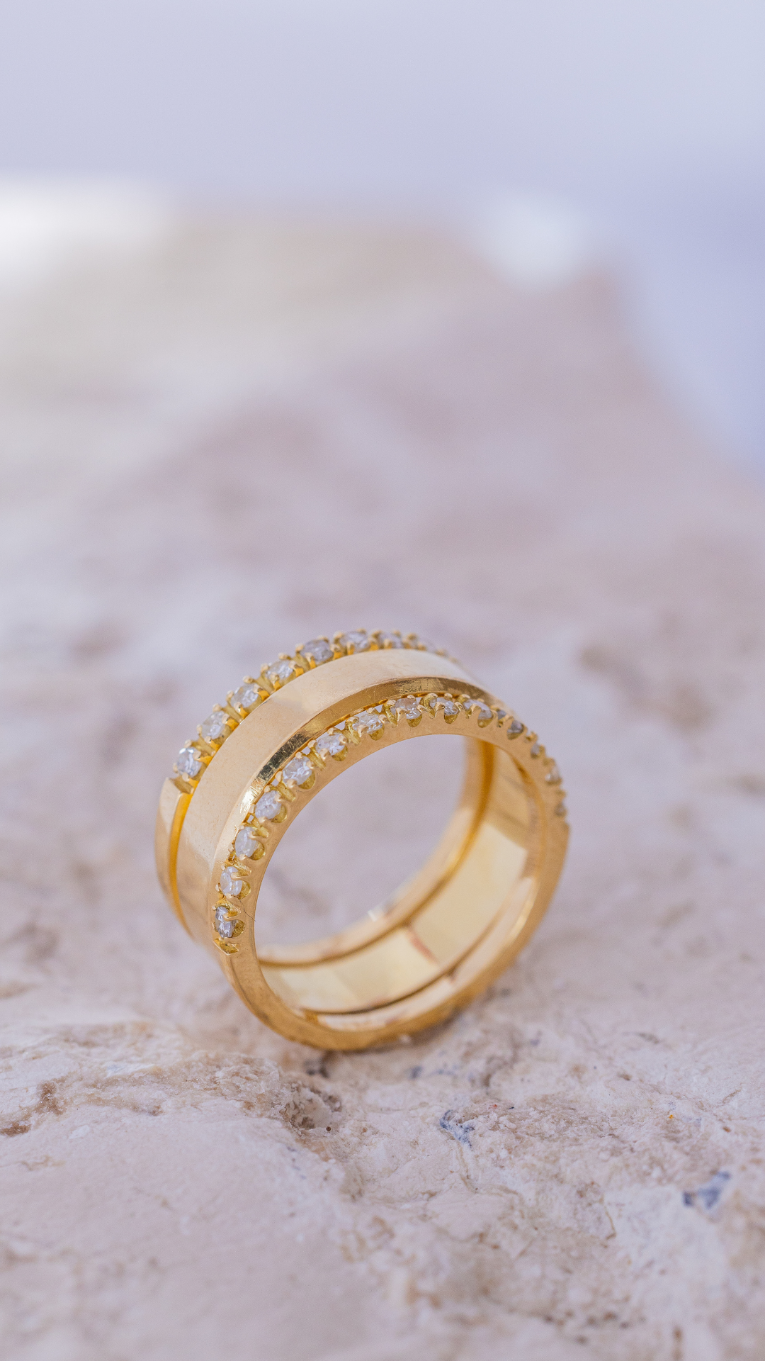 Cada par de alianças da Single Diamonds é forjado com o mesmo cuidado com que se constrói uma vida a dois: detalhe por detalhe, em ouro nobre e acabamento impecável.