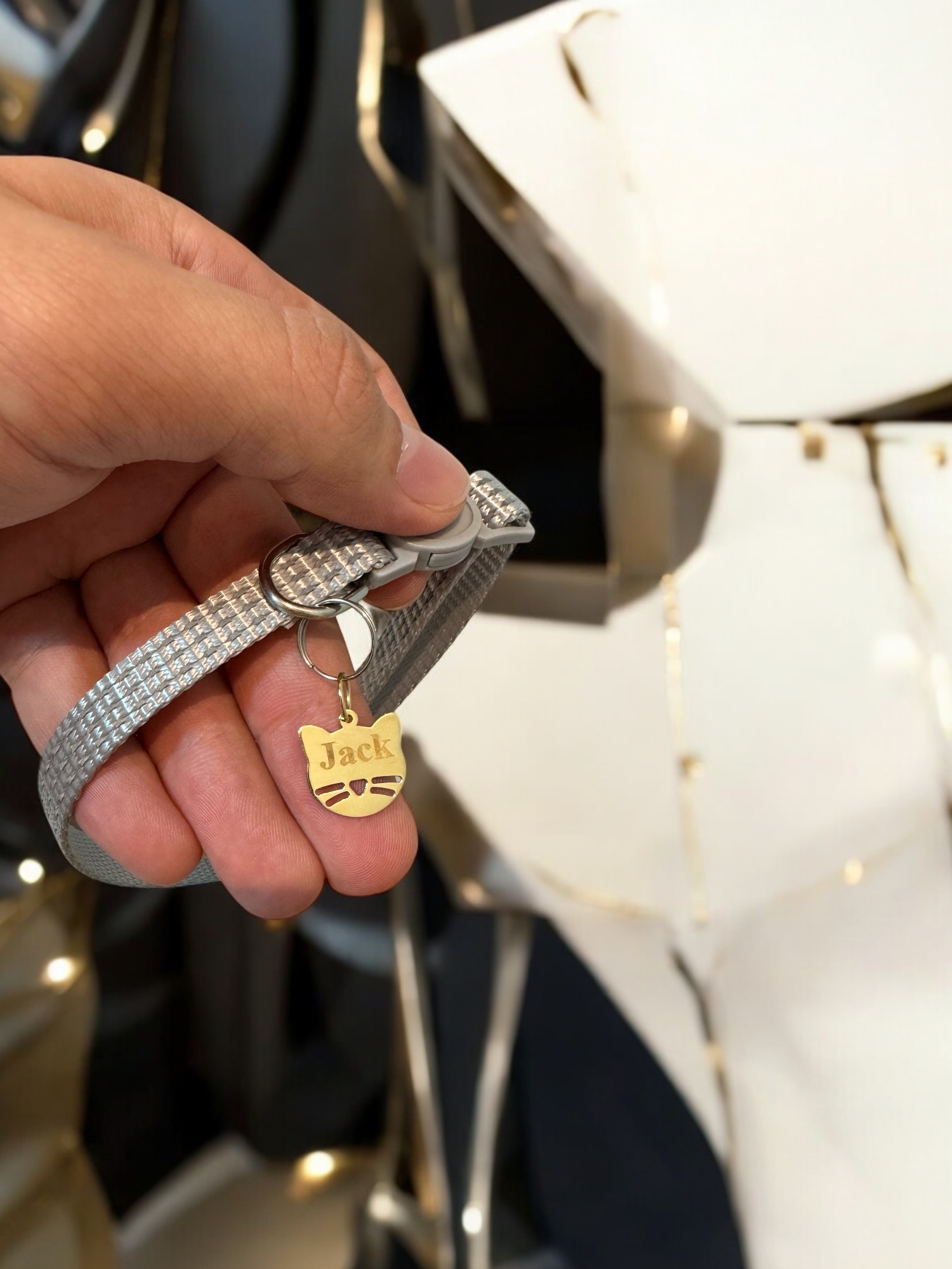 Coleiras, pingentes e tags personalizadas em ouro e pedras naturais, pensados para unir elegância, segurança e afeto em cada peça.
